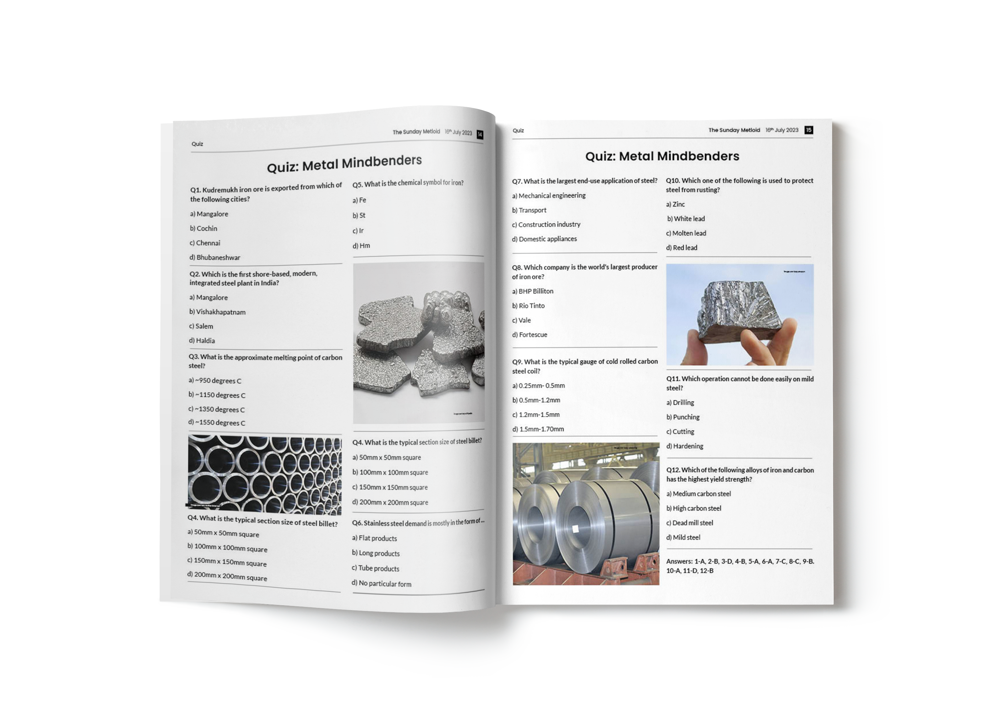 The Sunday Metloid goes above & beyond traditional reporting, furnishing special reports on ongoing events in the steel, coal, minerals and affiliated industries. Explore India’s bilateral relations with other countries, providing valuable discernment into trade opportunities and prospects. The Special Reports section offers analyses on hot topics. Readers can also learn about India’s recent deals with other nations in the Bilateral Relations section, examining their impact on the Indian industry. Test your knowledge in the Quiz section, where intriguing questions shed light on steel properties and industry facts.